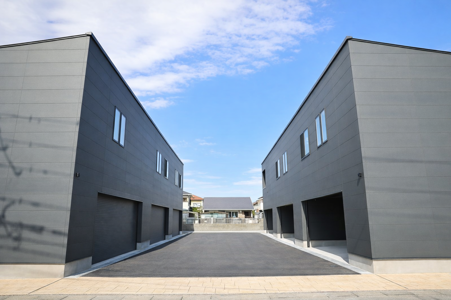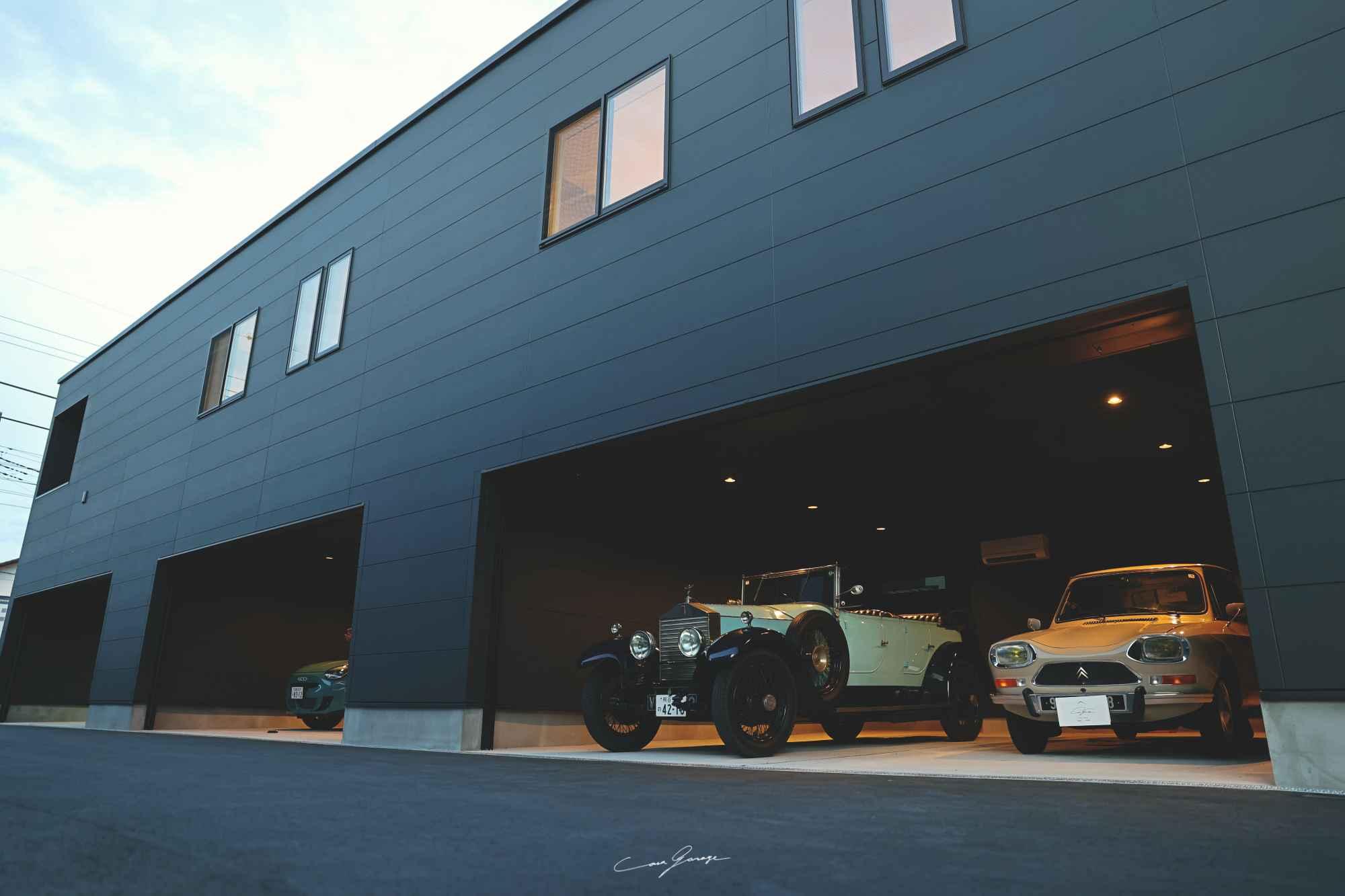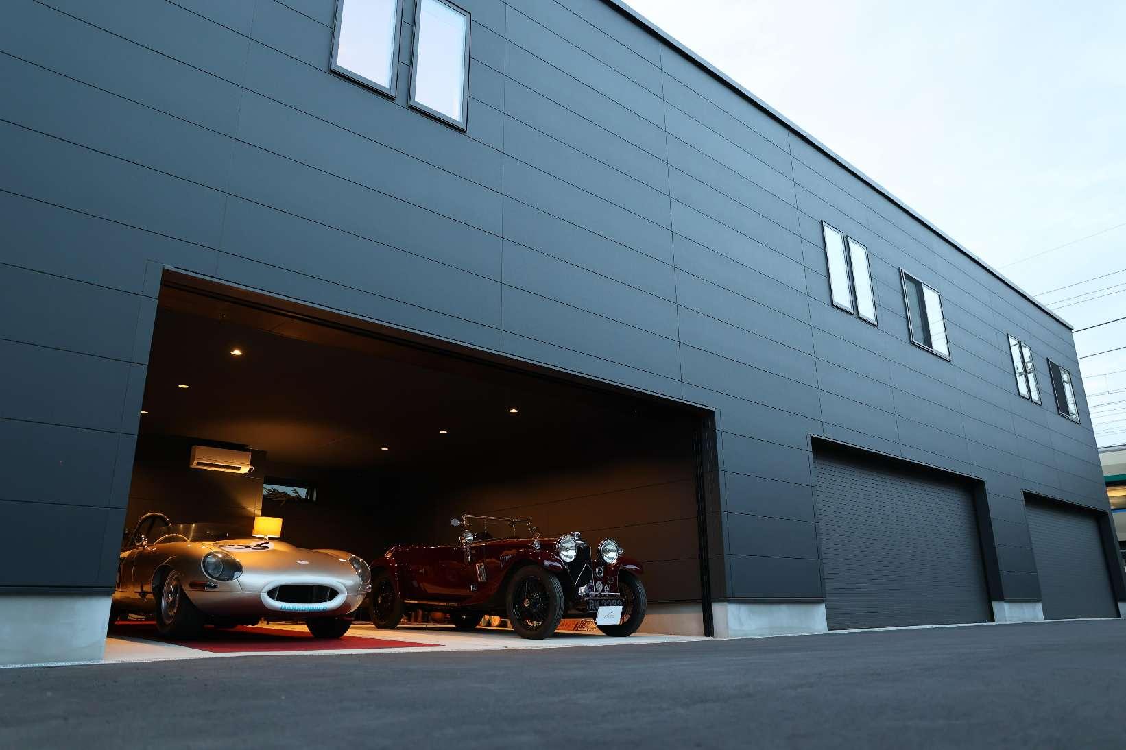 シャッターにはハイスピードタイプを採用。開口部は幅5,942mm、高さ2,350mmというハイスペック仕様です。大型車でもストレスなくスムーズに入出庫を可能にするこのハイスピードシャッターの機能と静かさが、早朝や深夜のホビータイムを可能にし、居住空間や近隣への配慮も万全です。強固な構造が、高価な愛車や大切なツール類を外部の不安から守り抜き 、「秘密基地」としての安心感を保証します。