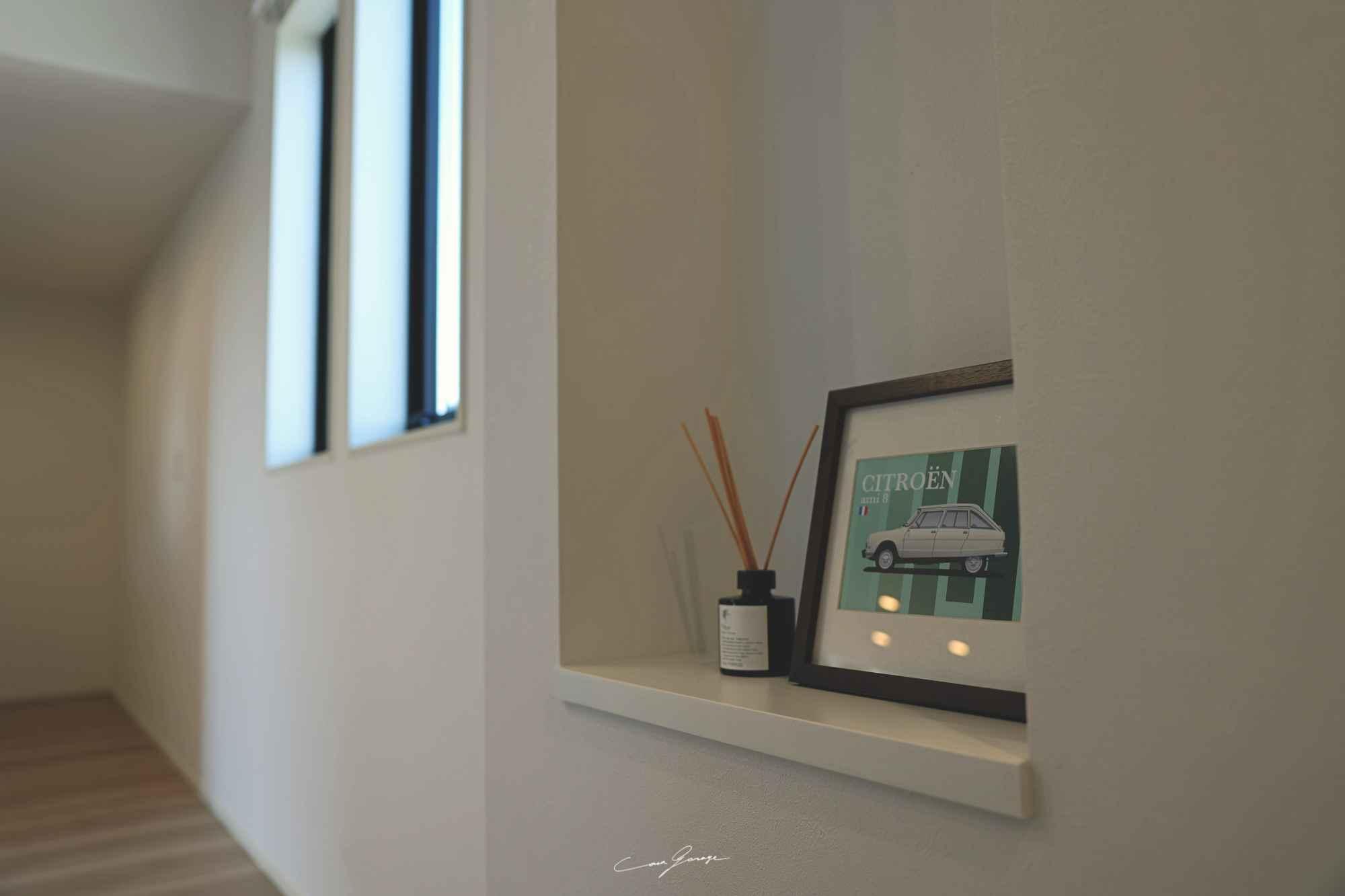 集中できるワークスペース: LDKの一角に、壁に向かうカウンターや、窓を眺めるデスクを設置すれば、すぐに快適なホームオフィスが完成します。趣味のガレージと居住空間が完全に分かれているため、仕事とプライベートのメリハリをしっかりつけられます。